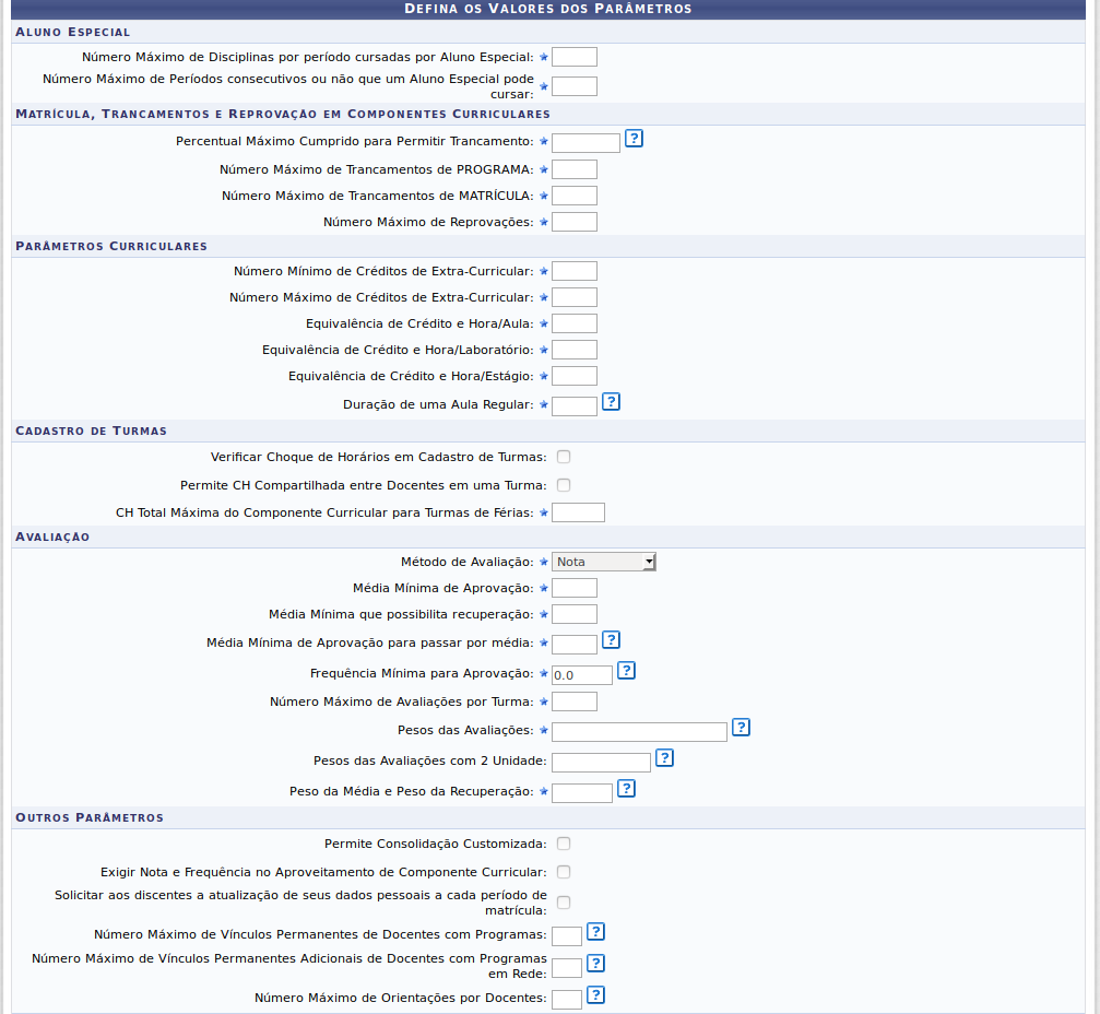 Dados de Consolidação (configuração de como será as avaliações no cursos):