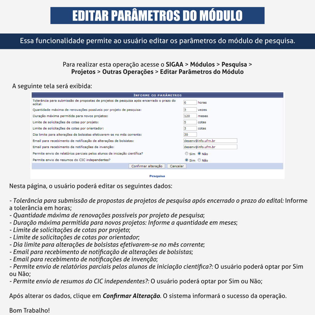 O módulo foi desenvolvido com a finalidade de gerencias as vagas de estágio, bem como os relatórios de estágio.