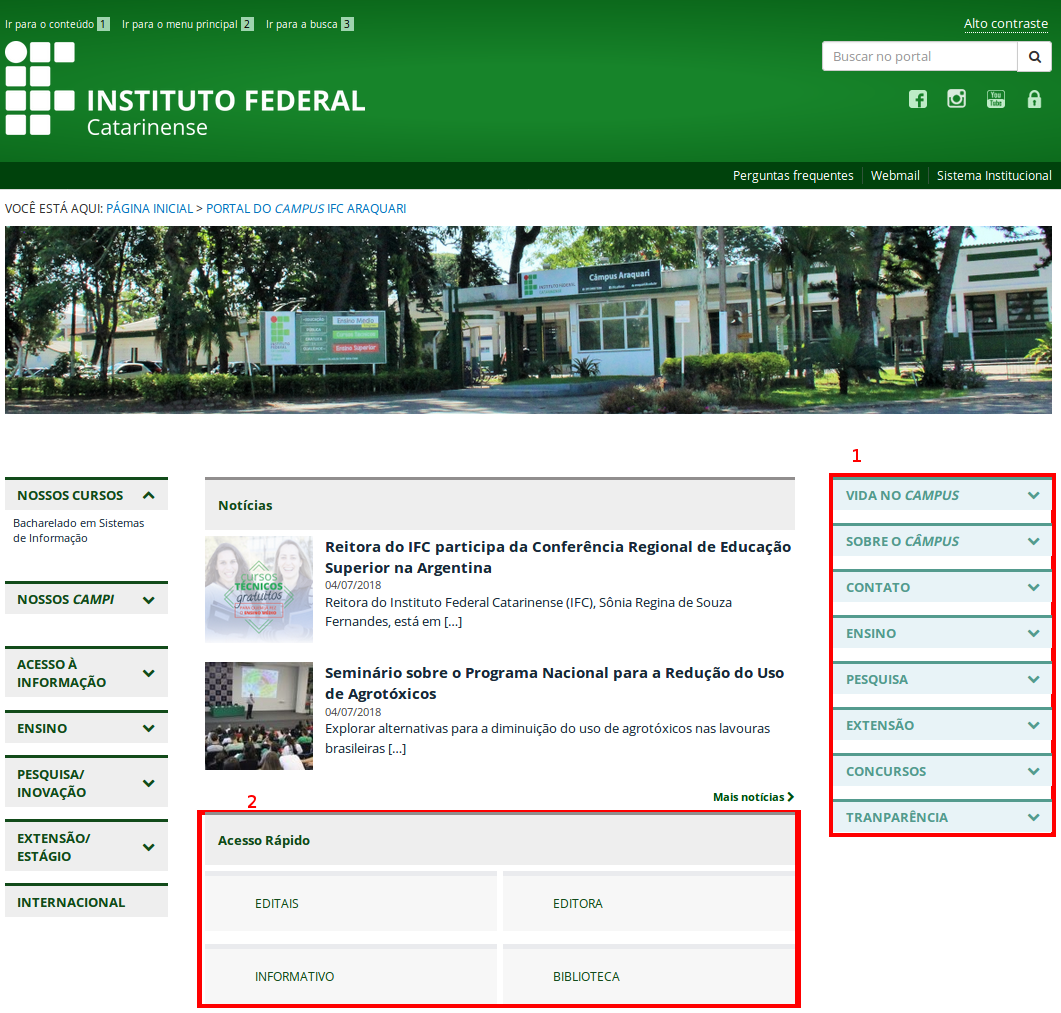 Após login no painel administrativo, acesse o menu Aparência > Menus.
