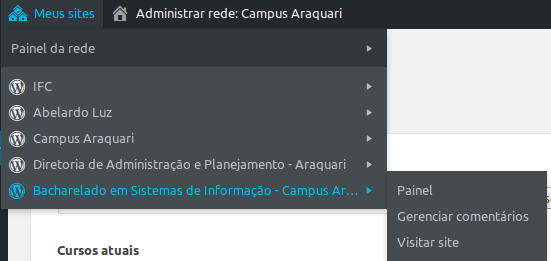 Caso não esteja no painel do campus correto saia do sistema e acesse nomedocampus.ifc.edu.br/wp-admin